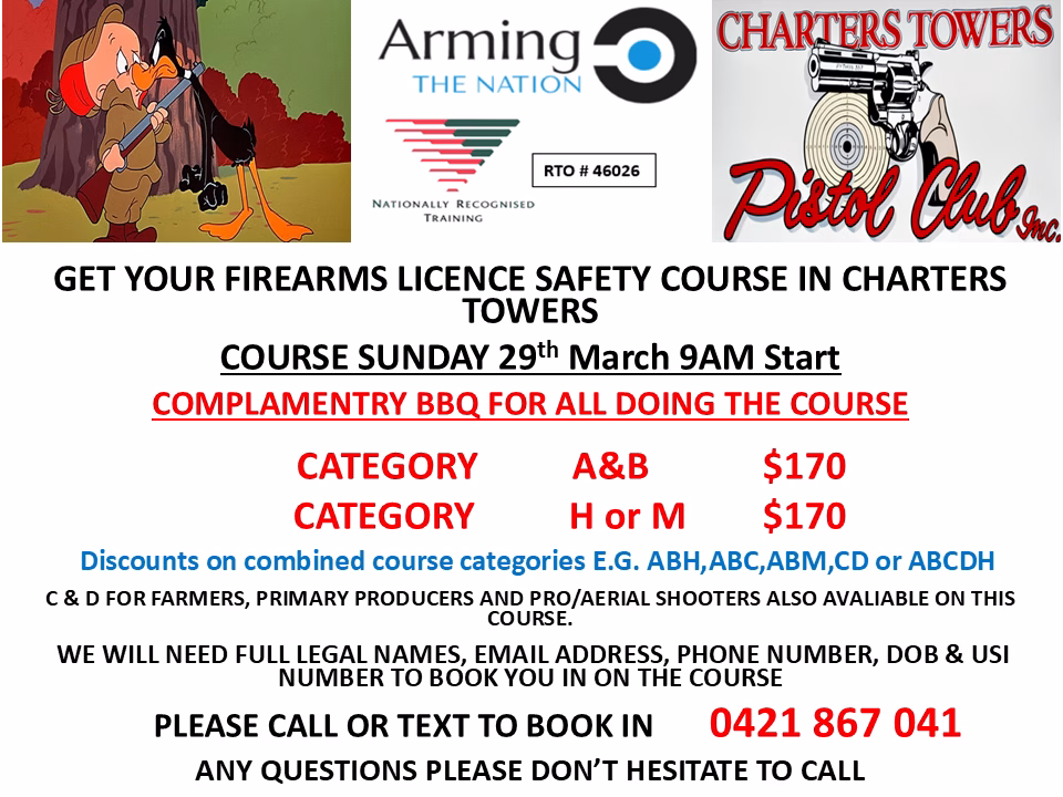 Charters Towers Pistol Club Sunday 29th March 9am Start